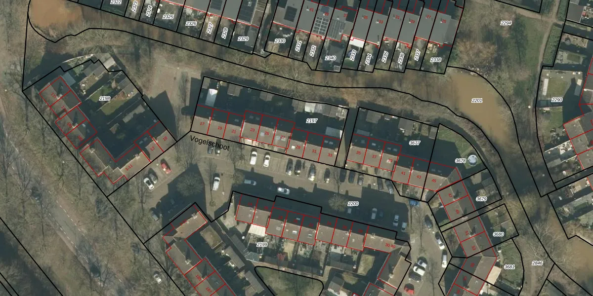 Vogelschoot 29 is gelegen op kadastraal perceel PCH00N2197. Deze kadastrale aanduiding is uniek en wordt gebruikt door het Kadaster om eigendomsrechten en andere zakelijke rechten vast te leggen. Het perceel maakt onderdeel uit van de kadastrale gemeente Princenhage.