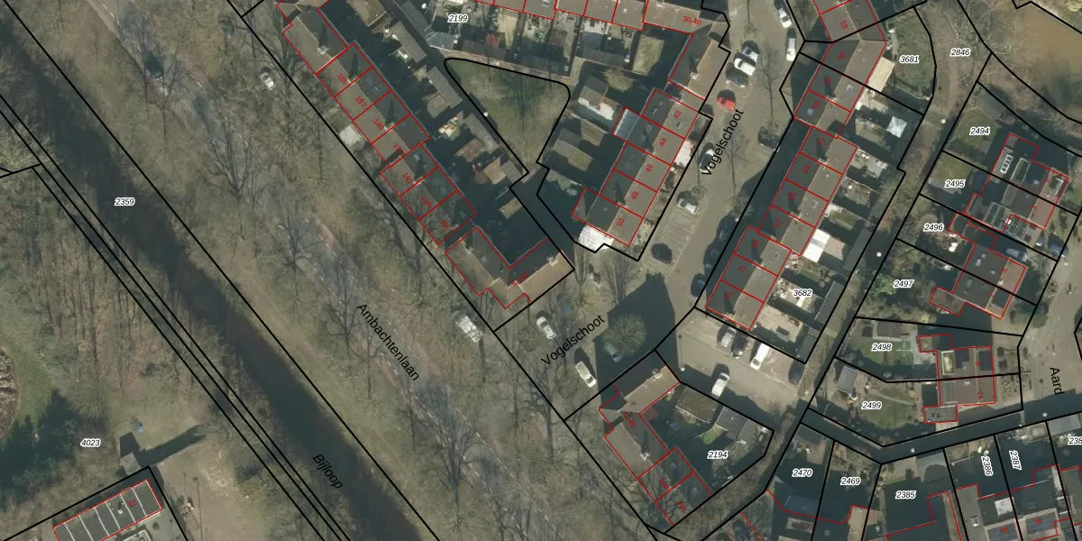 Het perceel waarop Vogelschoot 56 staat heeft een oppervlakte van 3705 m². Dit is een zeer groot perceel. De perceeloppervlakte wordt geregistreerd door het Kadaster. Gedetailleerde informatie over de maten van dit perceel kunt u vinden in het rapport Kadastrale kaart met maatvoering van Vogelschoot 56.