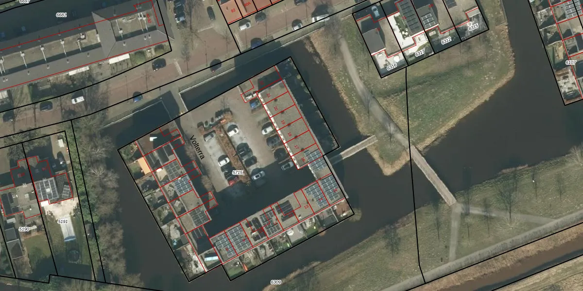 Het perceel waarop Volterra 17 staat heeft een oppervlakte van 3680 m². Dit is een zeer groot perceel. De perceeloppervlakte wordt geregistreerd door het Kadaster. Gedetailleerde informatie over de maten van dit perceel kunt u vinden in het rapport Kadastrale kaart met maatvoering van Volterra 17.