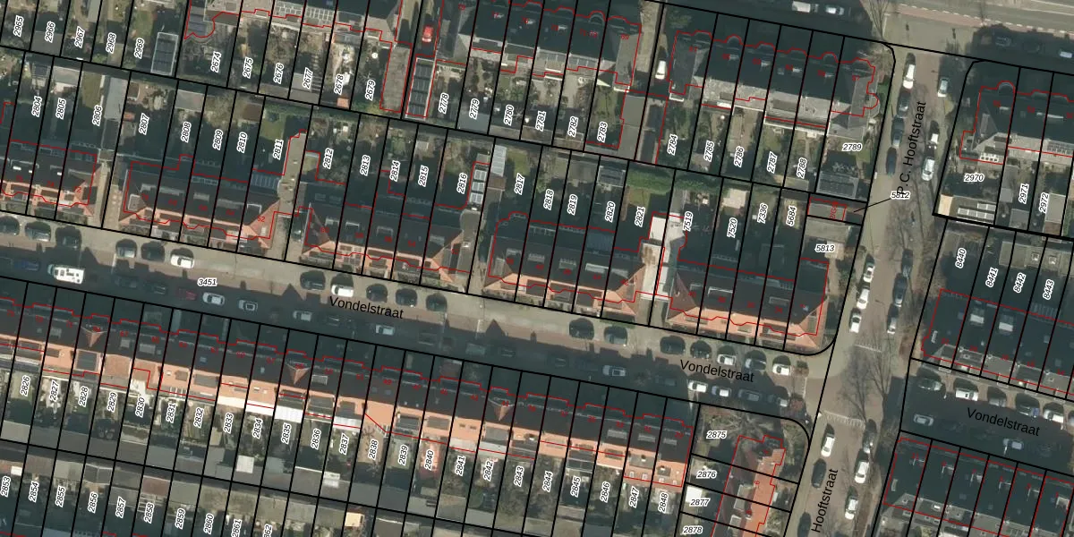 Gebruik de zoekbalk of klik op een perceel voor informatie over de adressen binnen dit perceel.