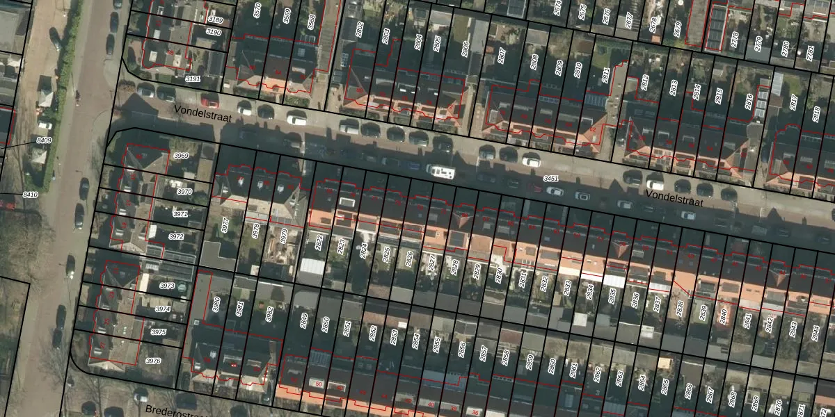 Het perceel waarop Vondelstraat 73 staat heeft een oppervlakte van 166 m². Dit is een middelgroot perceel. De perceeloppervlakte wordt geregistreerd door het Kadaster. Gedetailleerde informatie over de maten van dit perceel kunt u vinden in het rapport Kadastrale kaart met maatvoering van Vondelstraat 73.