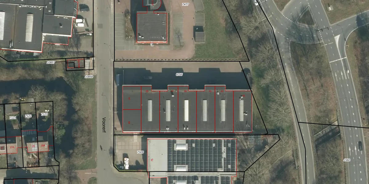 Voorerf 39 is gelegen op kadastraal perceel BDA00H8755. Deze kadastrale aanduiding is uniek en wordt gebruikt door het Kadaster om eigendomsrechten en andere zakelijke rechten vast te leggen. Het perceel maakt onderdeel uit van de kadastrale gemeente Breda.