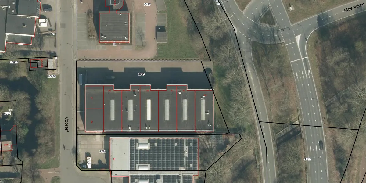 Het perceel waarop Voorerf 43 staat heeft een oppervlakte van 3039 m². Dit is een zeer groot perceel. De perceeloppervlakte wordt geregistreerd door het Kadaster. Gedetailleerde informatie over de maten van dit perceel kunt u vinden in het rapport Kadastrale kaart met maatvoering van Voorerf 43.