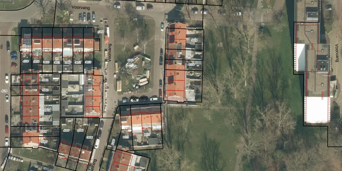 Het perceel waarop Voorvang 17 staat heeft een oppervlakte van 407 m². Dit is een groot perceel. De perceeloppervlakte wordt geregistreerd door het Kadaster. Gedetailleerde informatie over de maten van dit perceel kunt u vinden in het rapport Kadastrale kaart met maatvoering van Voorvang 17.
