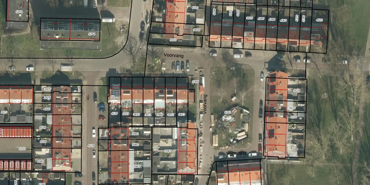Het perceel waarop Voorvang 7 staat heeft een oppervlakte van 166 m². Dit is een middelgroot perceel. De perceeloppervlakte wordt geregistreerd door het Kadaster. Gedetailleerde informatie over de maten van dit perceel kunt u vinden in het rapport Kadastrale kaart met maatvoering van Voorvang 7.