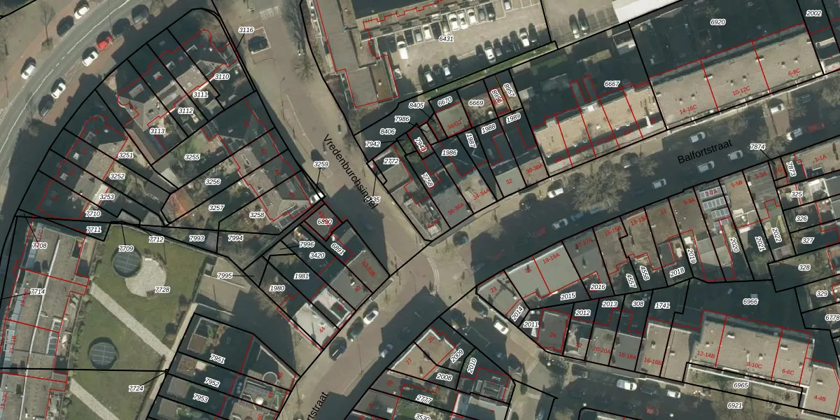 Het perceel waarop Vredenburchsingel 54 staat heeft een oppervlakte van 180 m². Dit is een middelgroot perceel. De perceeloppervlakte wordt geregistreerd door het Kadaster. Gedetailleerde informatie over de maten van dit perceel kunt u vinden in het rapport Kadastrale kaart met maatvoering van Vredenburchsingel 54.
