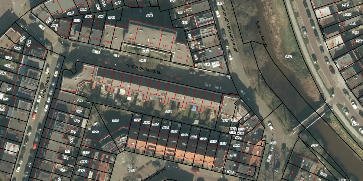 Vredenburchstraat 15 is gelegen op kadastraal perceel BDA00E8438. Deze kadastrale aanduiding is uniek en wordt gebruikt door het Kadaster om eigendomsrechten en andere zakelijke rechten vast te leggen. Het perceel maakt onderdeel uit van de kadastrale gemeente Breda.