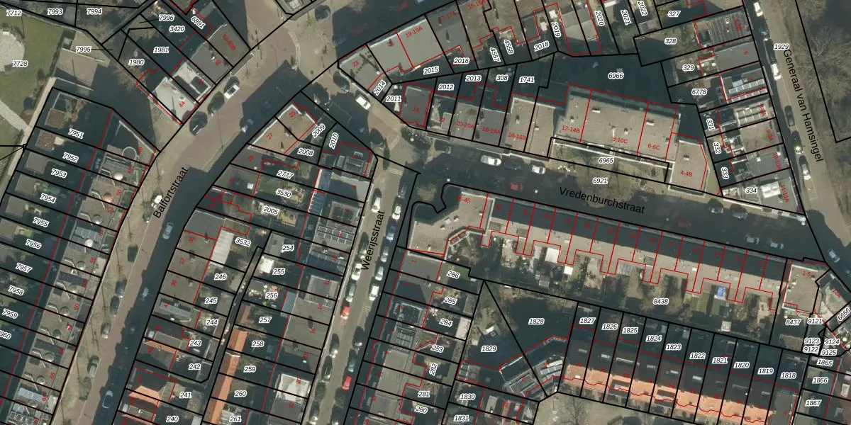 Het perceel waarop Vredenburchstraat 39 staat heeft een oppervlakte van 1710 m². Dit is een zeer groot perceel. De perceeloppervlakte wordt geregistreerd door het Kadaster. Gedetailleerde informatie over de maten van dit perceel kunt u vinden in het rapport Kadastrale kaart met maatvoering van Vredenburchstraat 39.