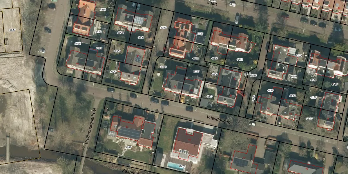 Het perceel waarop Vriesdongen 32 staat heeft een oppervlakte van 430 m². Dit is een groot perceel. De perceeloppervlakte wordt geregistreerd door het Kadaster. Gedetailleerde informatie over de maten van dit perceel kunt u vinden in het rapport Kadastrale kaart met maatvoering van Vriesdongen 32.