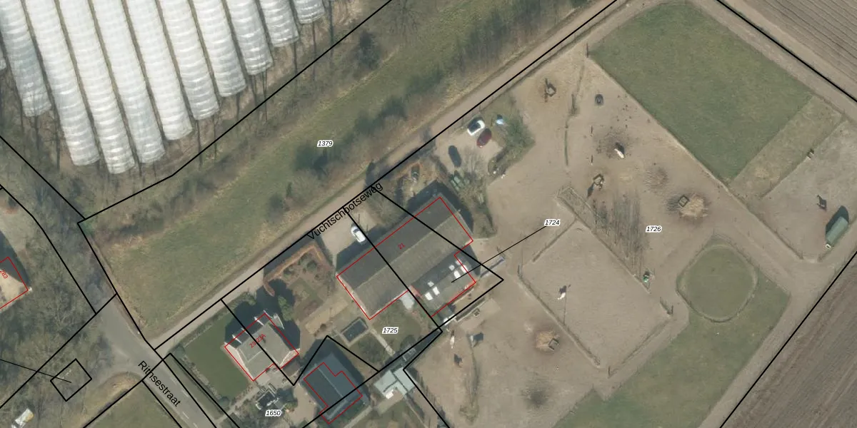 Het perceel waarop Vuchtschootseweg 21 staat heeft een oppervlakte van 9670 m². Dit is een zeer groot perceel. De perceeloppervlakte wordt geregistreerd door het Kadaster. Gedetailleerde informatie over de maten van dit perceel kunt u vinden in het rapport Kadastrale kaart met maatvoering van Vuchtschootseweg 21.