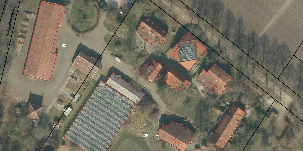 Het perceel waarop Vuchtschootseweg 41-B2 staat heeft een oppervlakte van 1,6 ha. Dit is een zeer groot perceel. De perceeloppervlakte wordt geregistreerd door het Kadaster. Gedetailleerde informatie over de maten van dit perceel kunt u vinden in het rapport Kadastrale kaart met maatvoering van Vuchtschootseweg 41-B2.