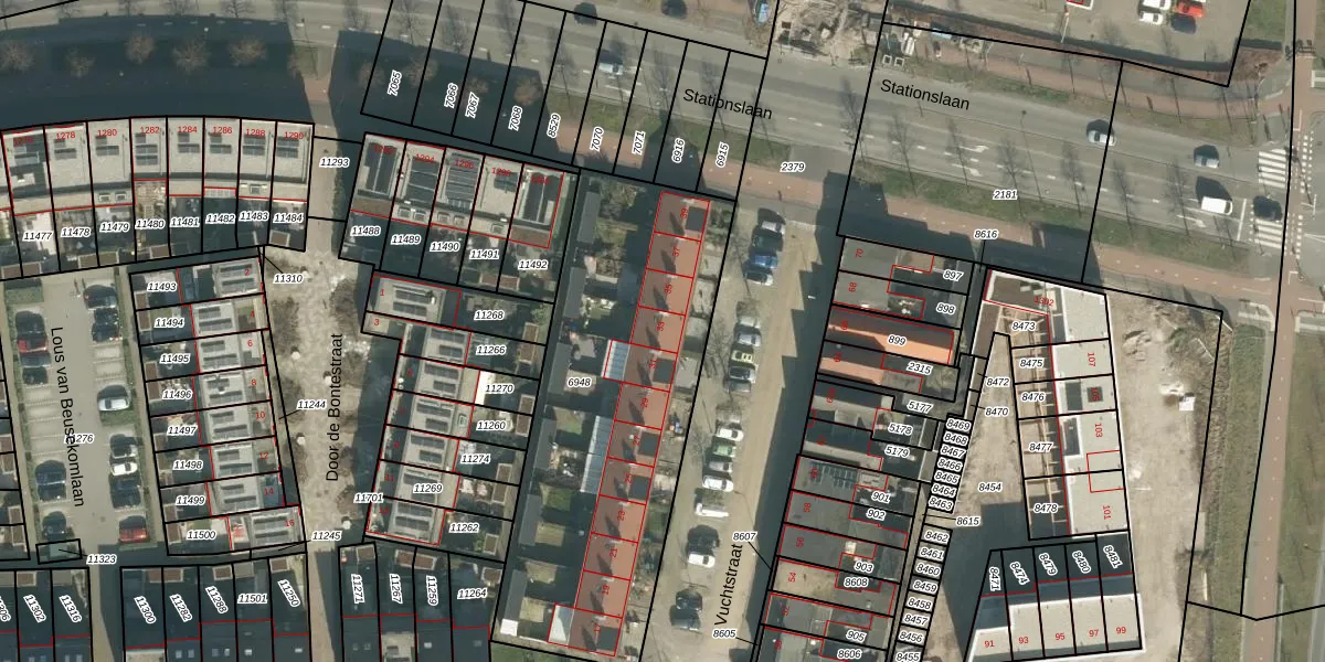 Vuchtstraat 33 is gelegen op kadastraal perceel BDA00D6948. Deze kadastrale aanduiding is uniek en wordt gebruikt door het Kadaster om eigendomsrechten en andere zakelijke rechten vast te leggen. Het perceel maakt onderdeel uit van de kadastrale gemeente Breda.