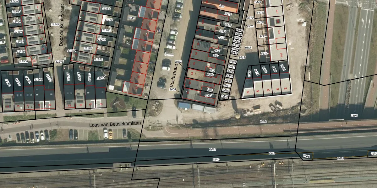 Vuchtstraat 50 is gelegen op kadastraal perceel BDA00G8606. Deze kadastrale aanduiding is uniek en wordt gebruikt door het Kadaster om eigendomsrechten en andere zakelijke rechten vast te leggen. Het perceel maakt onderdeel uit van de kadastrale gemeente Breda.