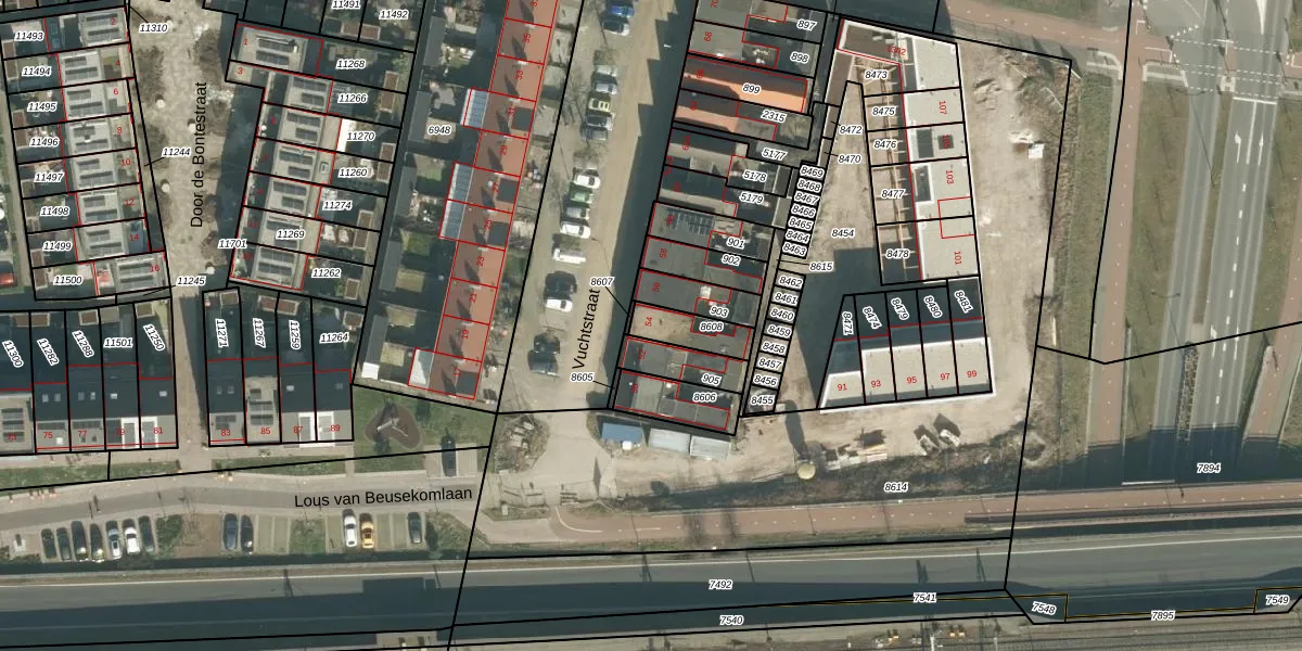 Vuchtstraat 54 is gelegen op kadastraal perceel BDA00G8608. Deze kadastrale aanduiding is uniek en wordt gebruikt door het Kadaster om eigendomsrechten en andere zakelijke rechten vast te leggen. Het perceel maakt onderdeel uit van de kadastrale gemeente Breda.