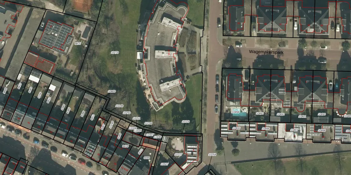 Het perceel waarop Wagemakerspark 18 staat heeft een oppervlakte van 5557 m². Dit is een zeer groot perceel. De perceeloppervlakte wordt geregistreerd door het Kadaster. Gedetailleerde informatie over de maten van dit perceel kunt u vinden in het rapport Kadastrale kaart met maatvoering van Wagemakerspark 18.
