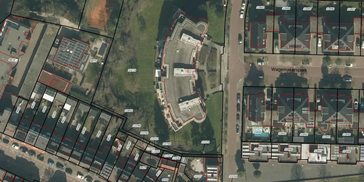 Het perceel waarop Wagemakerspark 21 staat heeft een oppervlakte van 5557 m². Dit is een zeer groot perceel. De perceeloppervlakte wordt geregistreerd door het Kadaster. Gedetailleerde informatie over de maten van dit perceel kunt u vinden in het rapport Kadastrale kaart met maatvoering van Wagemakerspark 21.