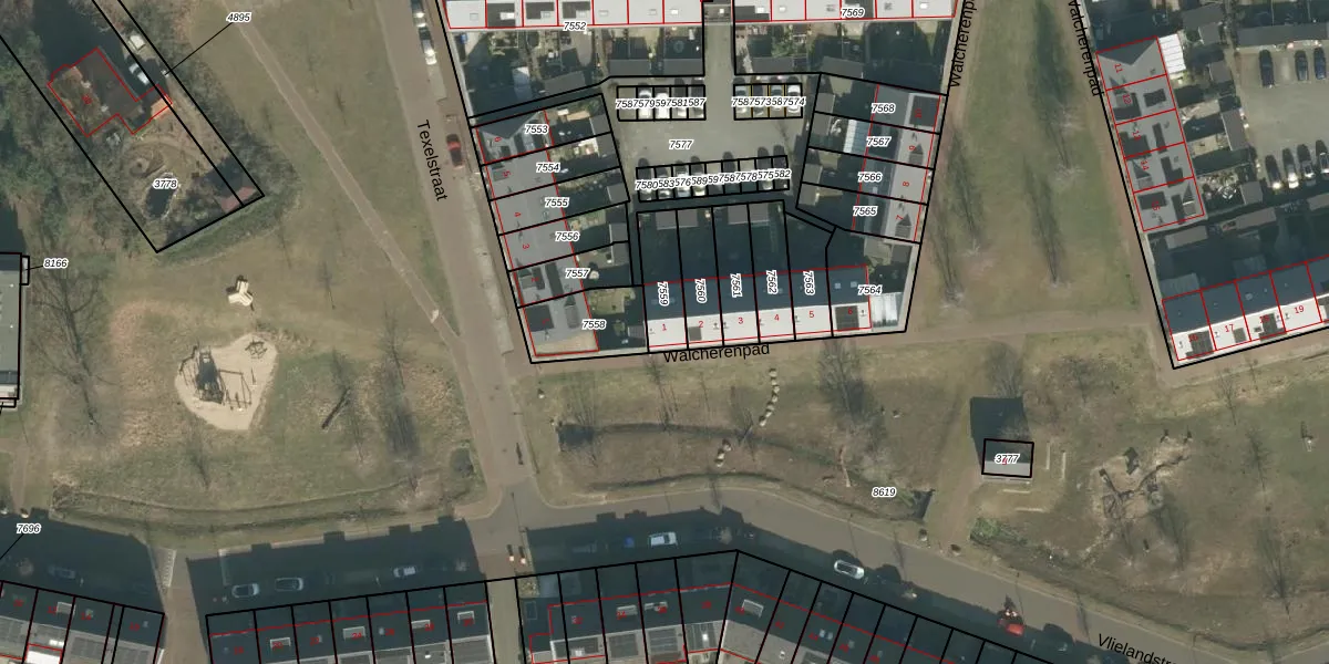 Walcherenpad 1 is gelegen op kadastraal perceel BDA00G7559. Deze kadastrale aanduiding is uniek en wordt gebruikt door het Kadaster om eigendomsrechten en andere zakelijke rechten vast te leggen. Het perceel maakt onderdeel uit van de kadastrale gemeente Breda.