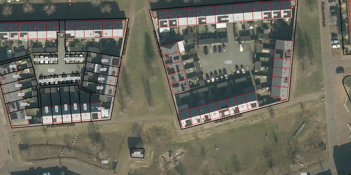 Het perceel waarop Walcherenpad 15 staat heeft een oppervlakte van 4716 m². Dit is een zeer groot perceel. De perceeloppervlakte wordt geregistreerd door het Kadaster. Gedetailleerde informatie over de maten van dit perceel kunt u vinden in het rapport Kadastrale kaart met maatvoering van Walcherenpad 15.