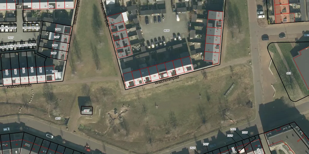 Walcherenpad 19 is gelegen op kadastraal perceel BDA00G8030. Deze kadastrale aanduiding is uniek en wordt gebruikt door het Kadaster om eigendomsrechten en andere zakelijke rechten vast te leggen. Het perceel maakt onderdeel uit van de kadastrale gemeente Breda.