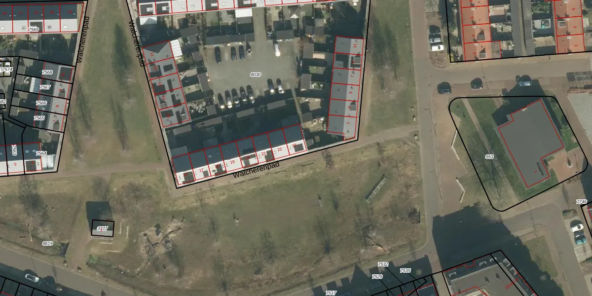 Walcherenpad 23 is gelegen op kadastraal perceel BDA00G8030. Deze kadastrale aanduiding is uniek en wordt gebruikt door het Kadaster om eigendomsrechten en andere zakelijke rechten vast te leggen. Het perceel maakt onderdeel uit van de kadastrale gemeente Breda.