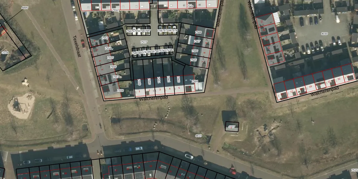 Walcherenpad 5 is gelegen op kadastraal perceel BDA00G7563. Deze kadastrale aanduiding is uniek en wordt gebruikt door het Kadaster om eigendomsrechten en andere zakelijke rechten vast te leggen. Het perceel maakt onderdeel uit van de kadastrale gemeente Breda.