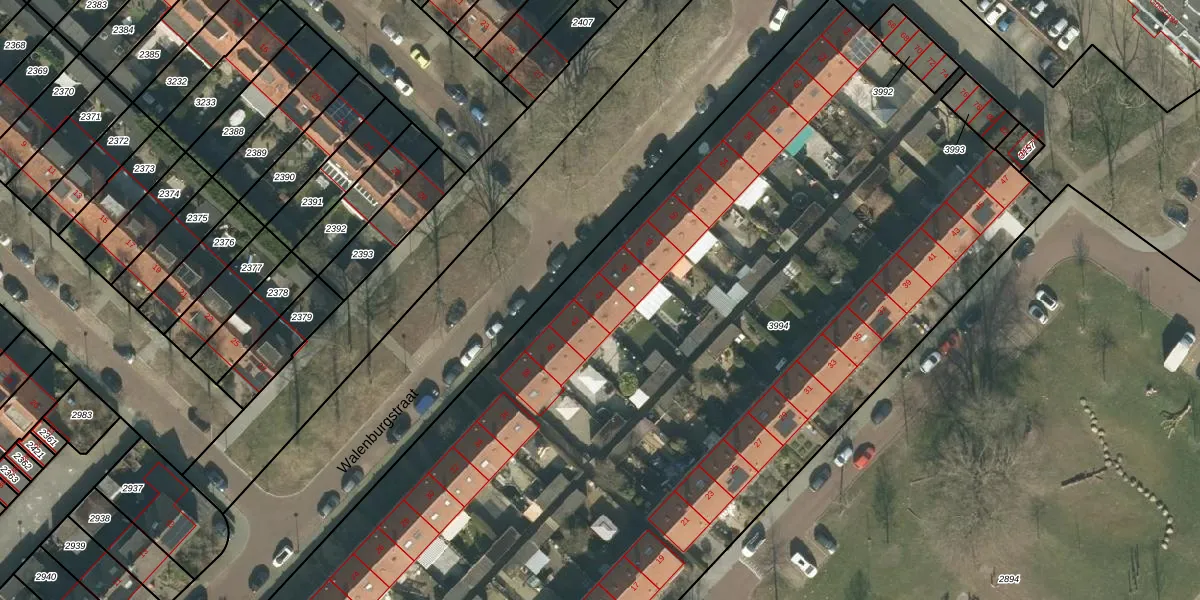 Het perceel waarop Walenburgstraat 44 staat heeft een oppervlakte van 7379 m². Dit is een zeer groot perceel. De perceeloppervlakte wordt geregistreerd door het Kadaster. Gedetailleerde informatie over de maten van dit perceel kunt u vinden in het rapport Kadastrale kaart met maatvoering van Walenburgstraat 44.