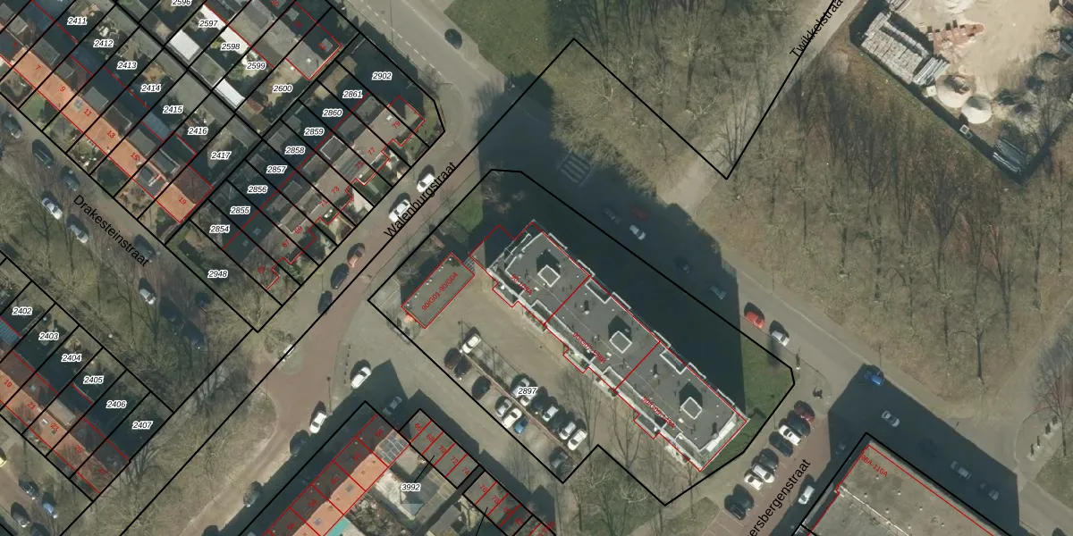 Het perceel waarop Walenburgstraat 94 staat heeft een oppervlakte van 2600 m². Dit is een zeer groot perceel. De perceeloppervlakte wordt geregistreerd door het Kadaster. Gedetailleerde informatie over de maten van dit perceel kunt u vinden in het rapport Kadastrale kaart met maatvoering van Walenburgstraat 94.