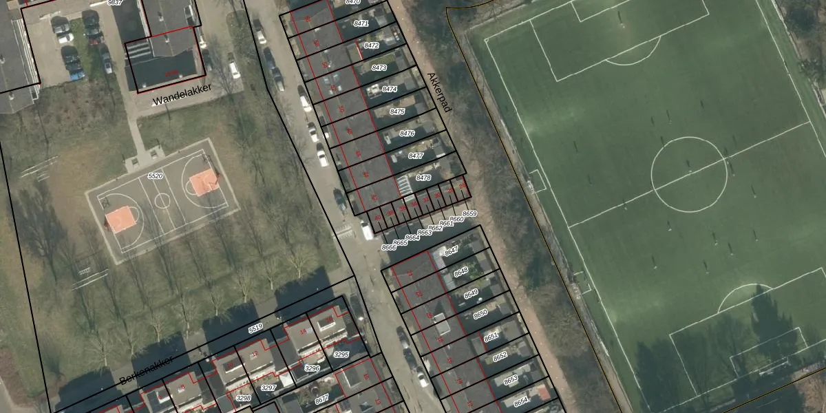Het perceel waarop Wandelakker 34 staat heeft een oppervlakte van 18 m². Dit is een klein perceel. De perceeloppervlakte wordt geregistreerd door het Kadaster. Gedetailleerde informatie over de maten van dit perceel kunt u vinden in het rapport Kadastrale kaart met maatvoering van Wandelakker 34.