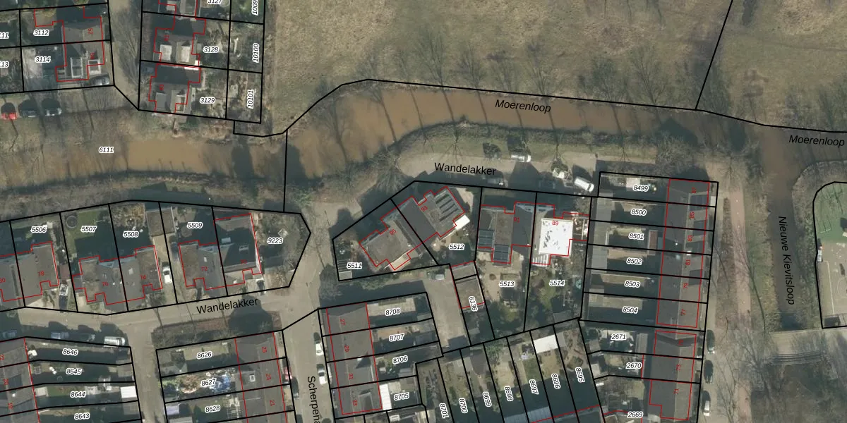 Gebruik de zoekbalk of klik op een perceel voor informatie over de adressen binnen dit perceel.