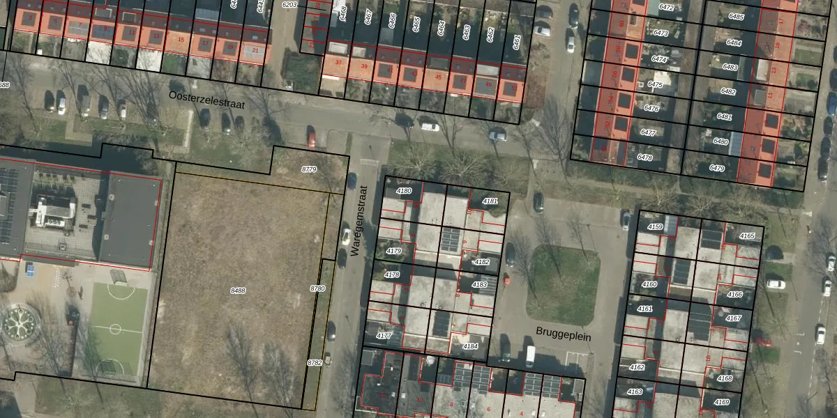 Het perceel waarop Waregemstraat 8 staat heeft een oppervlakte van 153 m². Dit is een middelgroot perceel. De perceeloppervlakte wordt geregistreerd door het Kadaster. Gedetailleerde informatie over de maten van dit perceel kunt u vinden in het rapport Kadastrale kaart met maatvoering van Waregemstraat 8.