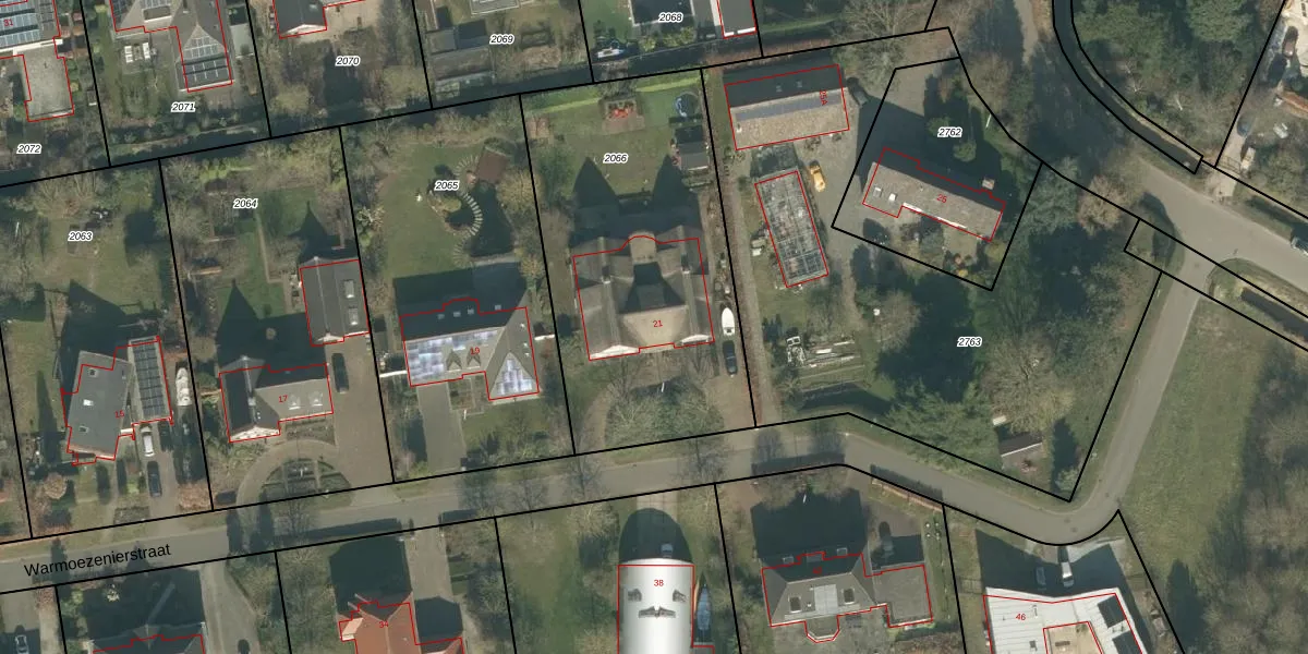 Warmoezenierstraat 21 is gelegen op kadastraal perceel PCH00P2066. Deze kadastrale aanduiding is uniek en wordt gebruikt door het Kadaster om eigendomsrechten en andere zakelijke rechten vast te leggen. Het perceel maakt onderdeel uit van de kadastrale gemeente Princenhage.