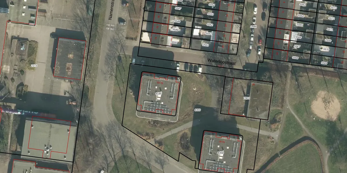 Waterloostraat 71 is gelegen op kadastraal perceel BDA00G8185. Deze kadastrale aanduiding is uniek en wordt gebruikt door het Kadaster om eigendomsrechten en andere zakelijke rechten vast te leggen. Het perceel maakt onderdeel uit van de kadastrale gemeente Breda.