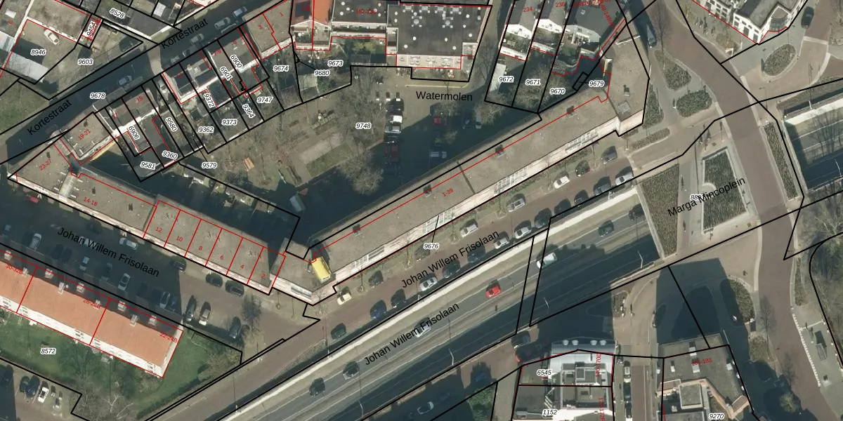 Het adres ligt op het perceel BDA00-D-9676, dat zich in de kadastrale gemeente Breda bevindt. De oppervlakte van het perceel is 2370 m². Dat is groter dan gemiddeld in Breda, waar de gemiddelde perceeloppervlakte op 1059,06 m² ligt. De grootste perceeloppervlakte in de kadastrale gemeente is 44,1 ha. De kleinste oppervlakte bedraagt 0 m². Op het perceel zijn 53 adressen aanwezig. De laatste wijziging in het de Basisregistratie Kadaster (BRK) was op 28-11-2006.