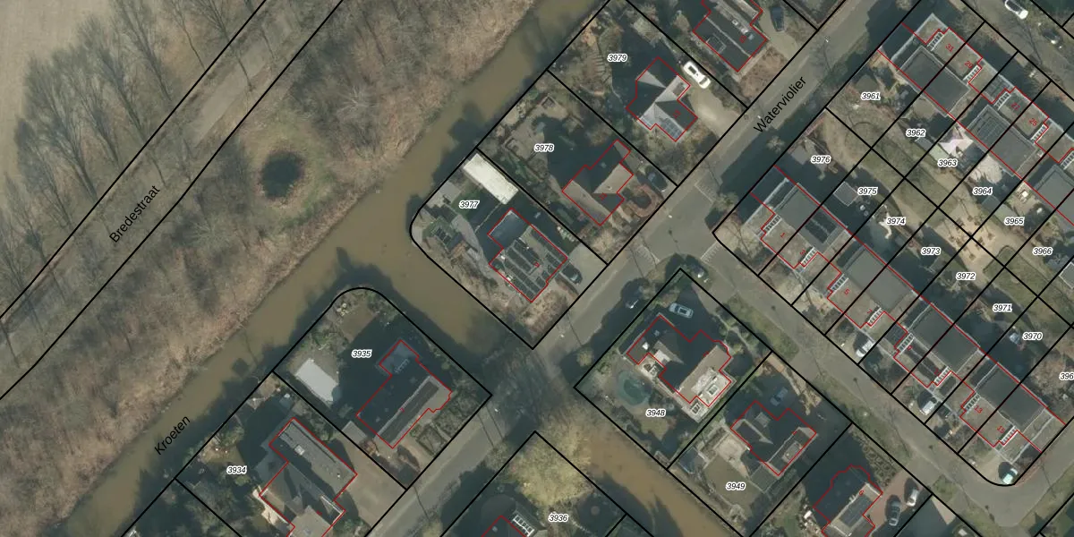 Waterviolier 9 is gelegen op kadastraal perceel BDA00I3977. Deze kadastrale aanduiding is uniek en wordt gebruikt door het Kadaster om eigendomsrechten en andere zakelijke rechten vast te leggen. Het perceel maakt onderdeel uit van de kadastrale gemeente Breda.