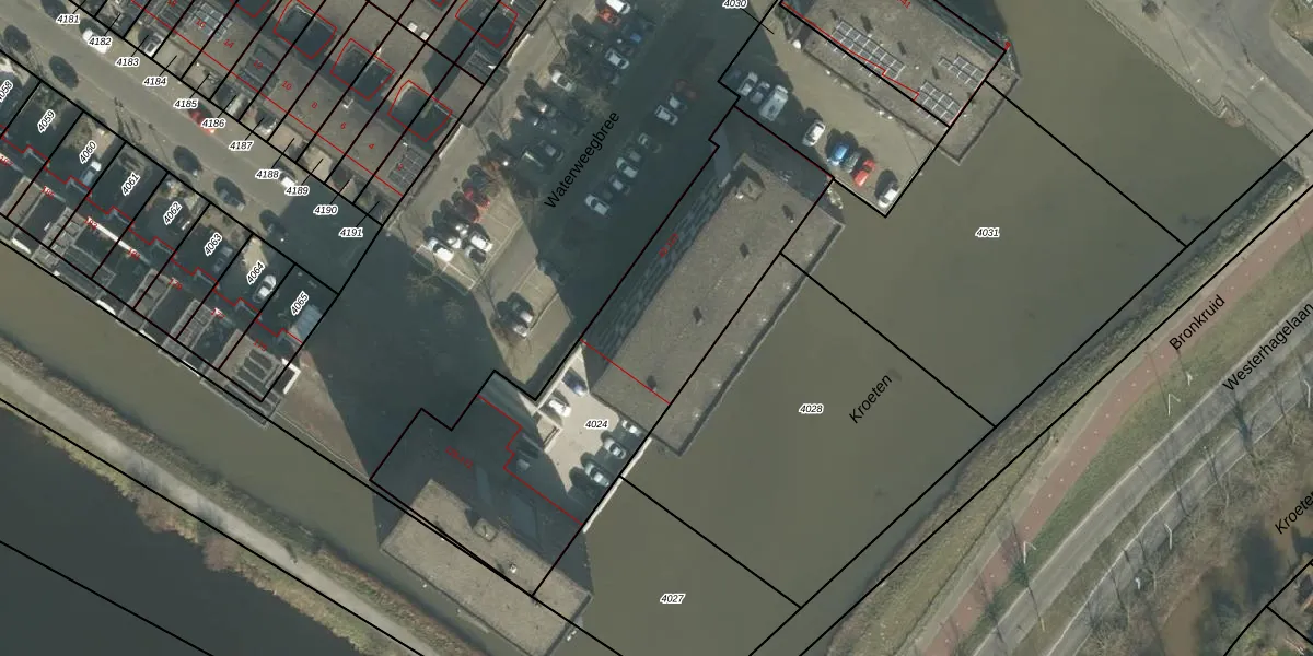 Waterweegbree 121 is gelegen op kadastraal perceel BDA00I4024. Deze kadastrale aanduiding is uniek en wordt gebruikt door het Kadaster om eigendomsrechten en andere zakelijke rechten vast te leggen. Het perceel maakt onderdeel uit van de kadastrale gemeente Breda.