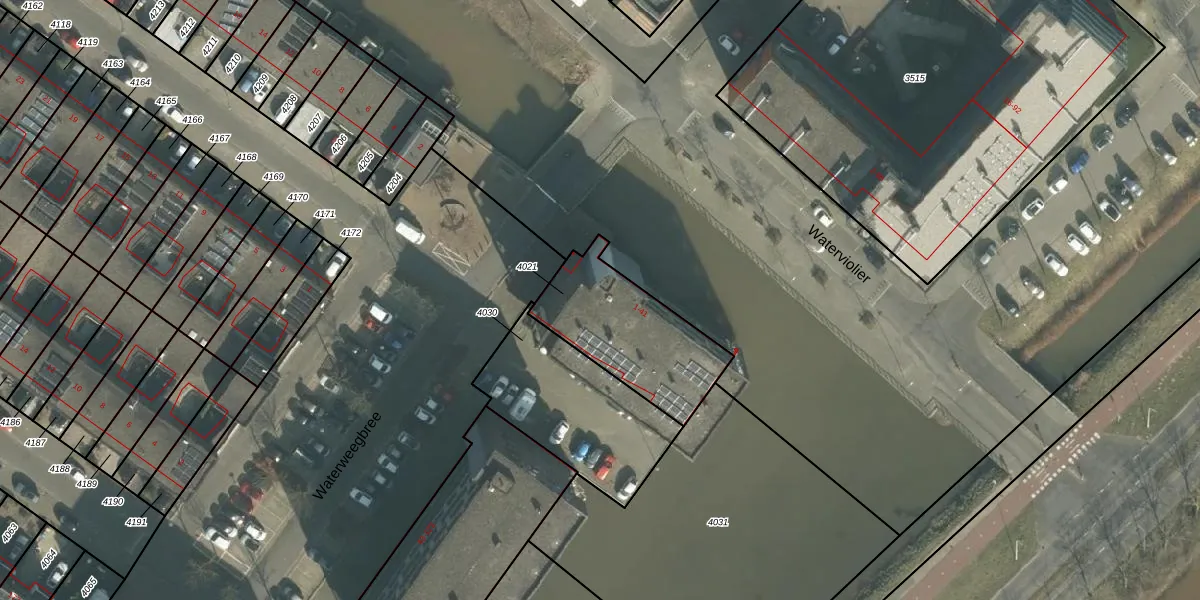 Waterweegbree 25 is gelegen op kadastraal perceel BDA00I4021. Deze kadastrale aanduiding is uniek en wordt gebruikt door het Kadaster om eigendomsrechten en andere zakelijke rechten vast te leggen. Het perceel maakt onderdeel uit van de kadastrale gemeente Breda.