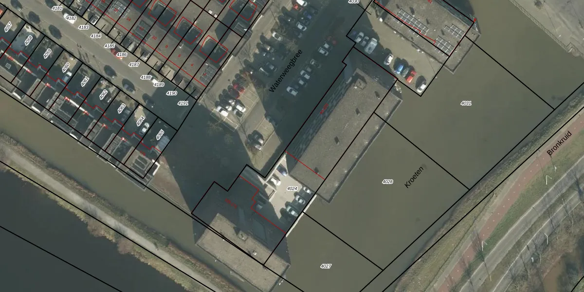 Waterweegbree 53 is gelegen op kadastraal perceel BDA00I4024. Deze kadastrale aanduiding is uniek en wordt gebruikt door het Kadaster om eigendomsrechten en andere zakelijke rechten vast te leggen. Het perceel maakt onderdeel uit van de kadastrale gemeente Breda.