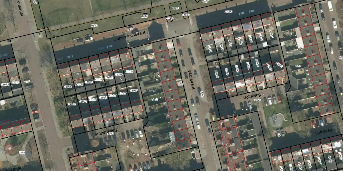 Het perceel waarop Wattstraat 13 staat heeft een oppervlakte van 1696 m². Dit is een zeer groot perceel. De perceeloppervlakte wordt geregistreerd door het Kadaster. Gedetailleerde informatie over de maten van dit perceel kunt u vinden in het rapport Kadastrale kaart met maatvoering van Wattstraat 13.