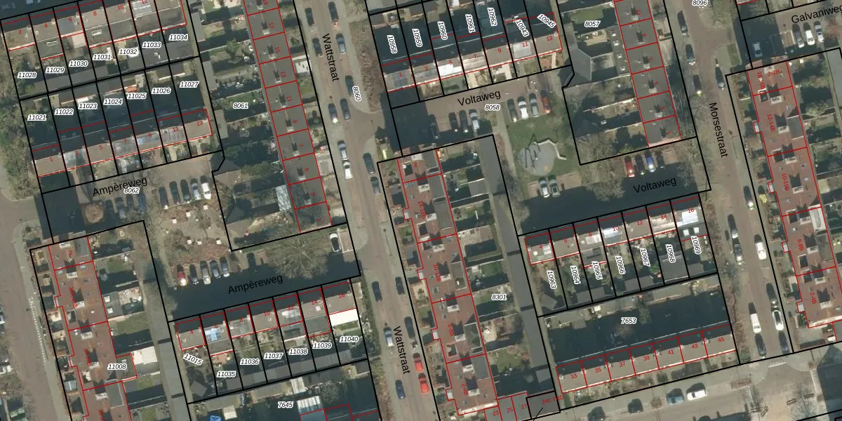 Wattstraat 14 is gelegen op kadastraal perceel BDA00D8301. Deze kadastrale aanduiding is uniek en wordt gebruikt door het Kadaster om eigendomsrechten en andere zakelijke rechten vast te leggen. Het perceel maakt onderdeel uit van de kadastrale gemeente Breda.