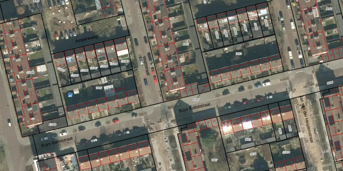 Het perceel waarop Wattstraat 2 staat heeft een oppervlakte van 1881 m². Dit is een zeer groot perceel. De perceeloppervlakte wordt geregistreerd door het Kadaster. Gedetailleerde informatie over de maten van dit perceel kunt u vinden in het rapport Kadastrale kaart met maatvoering van Wattstraat 2.