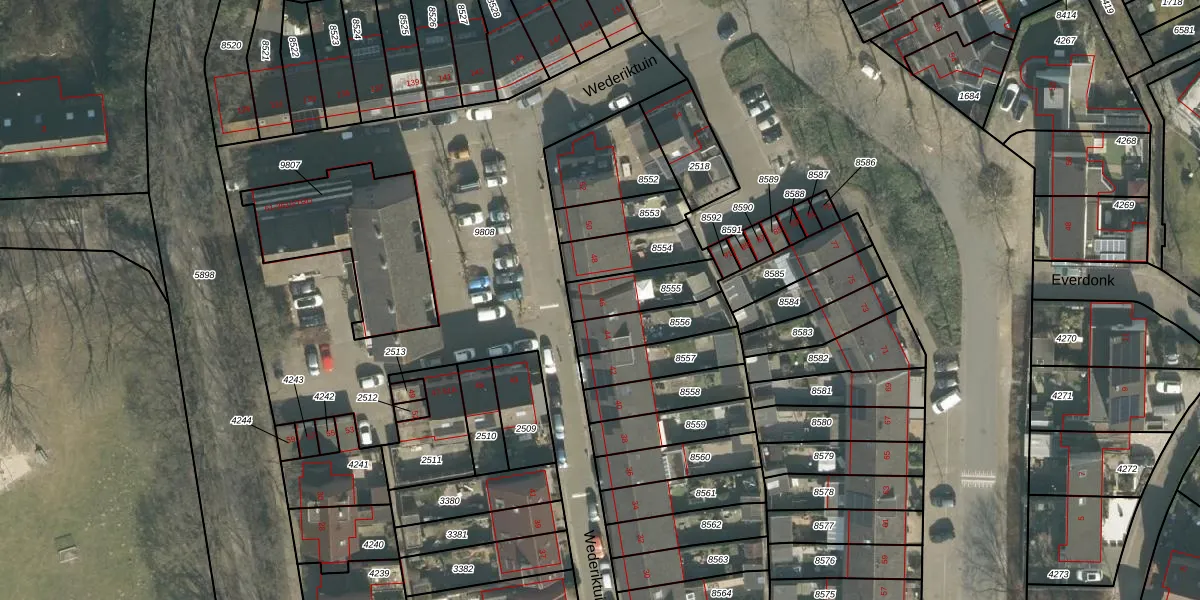 Wederiktuin 46 is gelegen op kadastraal perceel BDA00H8555. Deze kadastrale aanduiding is uniek en wordt gebruikt door het Kadaster om eigendomsrechten en andere zakelijke rechten vast te leggen. Het perceel maakt onderdeel uit van de kadastrale gemeente Breda.