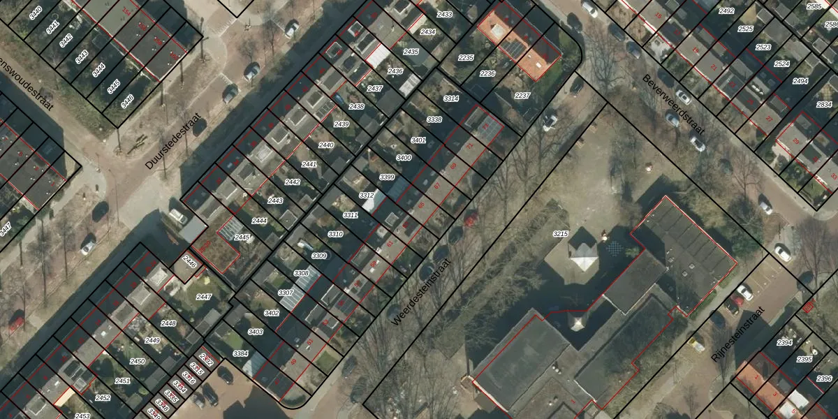 Het perceel waarop Weerdesteinstraat 65 staat heeft een oppervlakte van 165 m². Dit is een middelgroot perceel. De perceeloppervlakte wordt geregistreerd door het Kadaster. Gedetailleerde informatie over de maten van dit perceel kunt u vinden in het rapport Kadastrale kaart met maatvoering van Weerdesteinstraat 65.