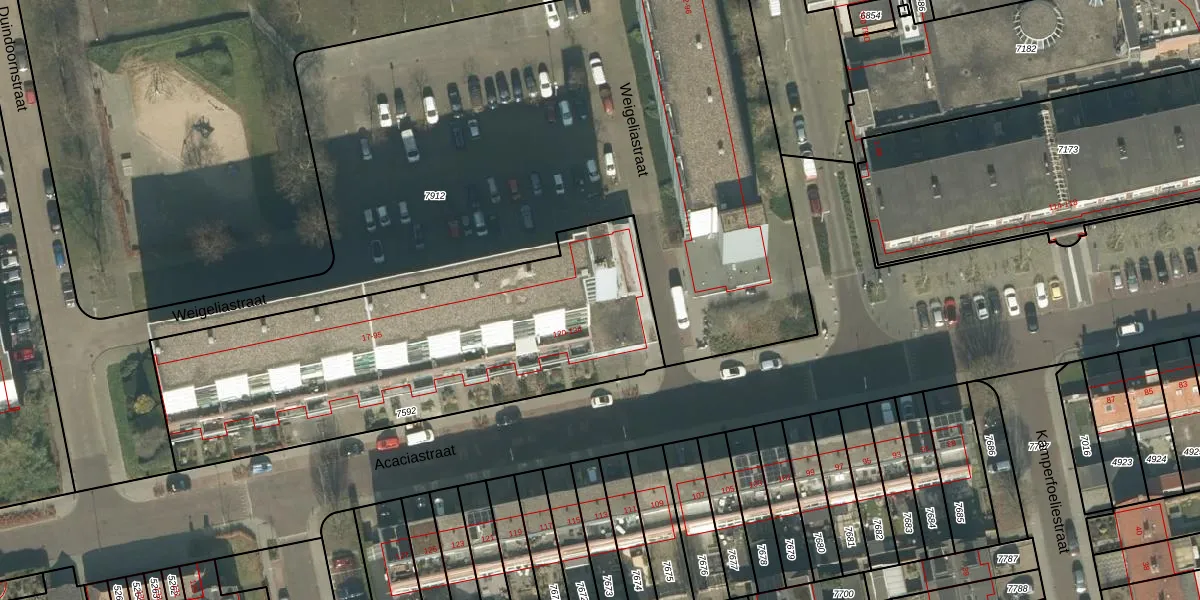 Weigeliastraat 91 is gelegen op kadastraal perceel BDA00E7592. Deze kadastrale aanduiding is uniek en wordt gebruikt door het Kadaster om eigendomsrechten en andere zakelijke rechten vast te leggen. Het perceel maakt onderdeel uit van de kadastrale gemeente Breda.