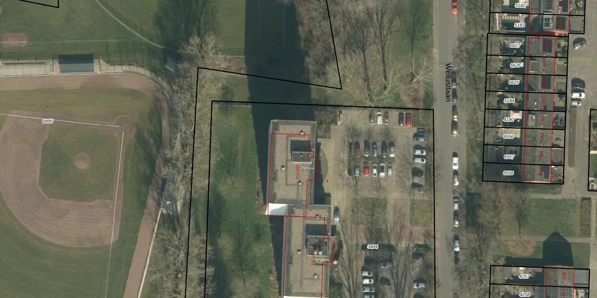 Het perceel waarop Weilustlaan 229 staat heeft een oppervlakte van 6150 m². Dit is een zeer groot perceel. De perceeloppervlakte wordt geregistreerd door het Kadaster. Gedetailleerde informatie over de maten van dit perceel kunt u vinden in het rapport Kadastrale kaart met maatvoering van Weilustlaan 229.