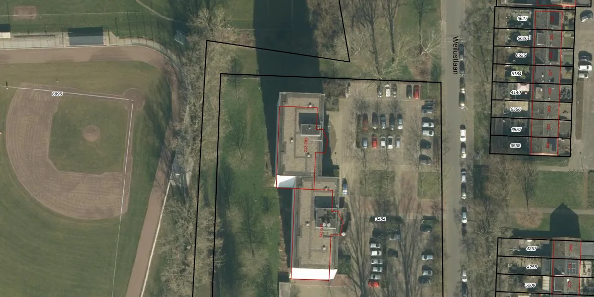 Het perceel waarop Weilustlaan 245 staat heeft een oppervlakte van 6150 m². Dit is een zeer groot perceel. De perceeloppervlakte wordt geregistreerd door het Kadaster. Gedetailleerde informatie over de maten van dit perceel kunt u vinden in het rapport Kadastrale kaart met maatvoering van Weilustlaan 245.