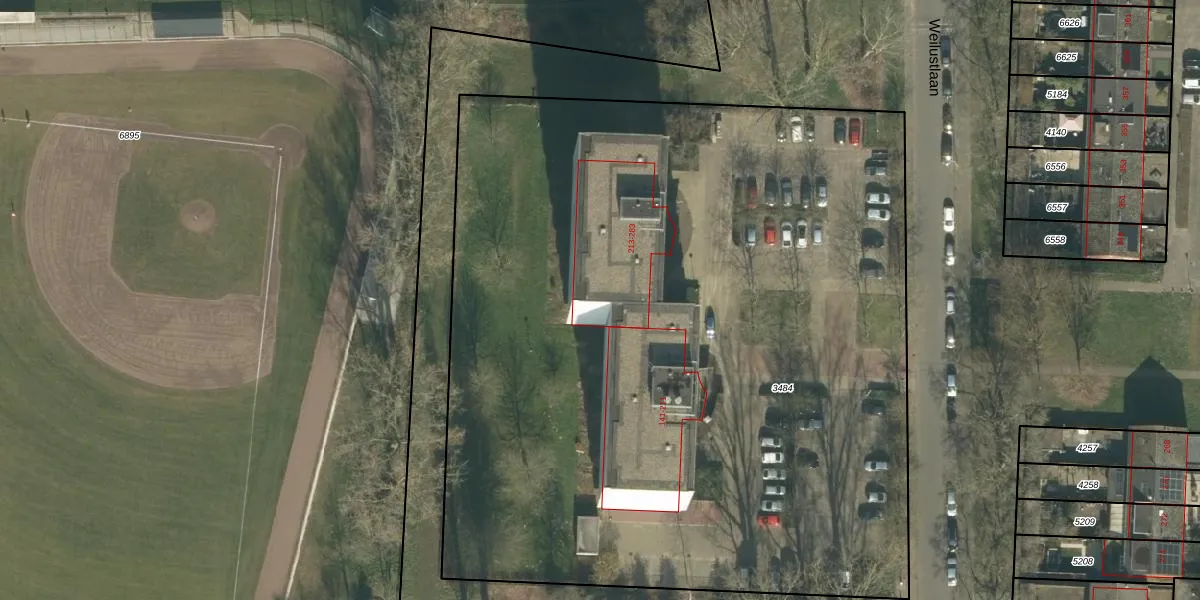 Het perceel waarop Weilustlaan 255 staat heeft een oppervlakte van 6150 m². Dit is een zeer groot perceel. De perceeloppervlakte wordt geregistreerd door het Kadaster. Gedetailleerde informatie over de maten van dit perceel kunt u vinden in het rapport Kadastrale kaart met maatvoering van Weilustlaan 255.