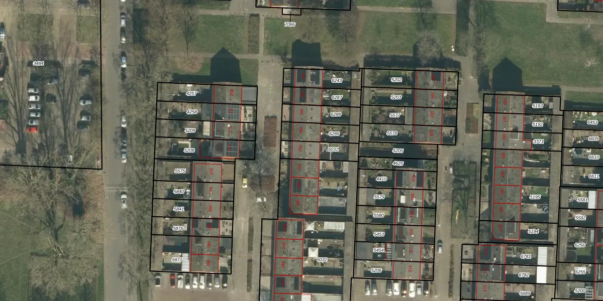 Gebruik de zoekbalk of klik op een perceel voor informatie over de adressen binnen dit perceel.