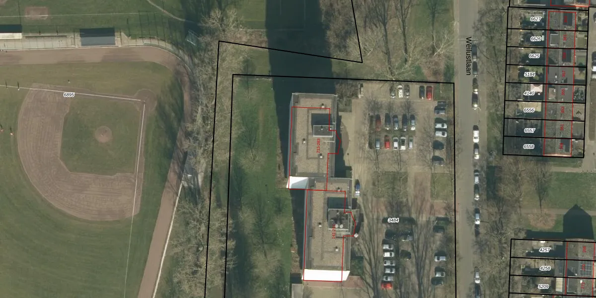 Het perceel waarop Weilustlaan 269 staat heeft een oppervlakte van 6150 m². Dit is een zeer groot perceel. De perceeloppervlakte wordt geregistreerd door het Kadaster. Gedetailleerde informatie over de maten van dit perceel kunt u vinden in het rapport Kadastrale kaart met maatvoering van Weilustlaan 269.