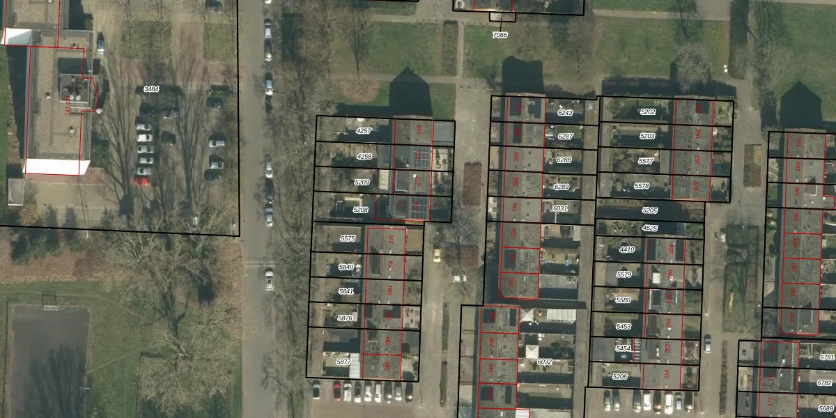Gebruik de zoekbalk of klik op een perceel voor informatie over de adressen binnen dit perceel.