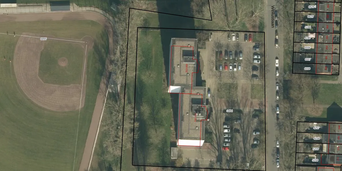 Het perceel waarop Weilustlaan 279 staat heeft een oppervlakte van 6150 m². Dit is een zeer groot perceel. De perceeloppervlakte wordt geregistreerd door het Kadaster. Gedetailleerde informatie over de maten van dit perceel kunt u vinden in het rapport Kadastrale kaart met maatvoering van Weilustlaan 279.